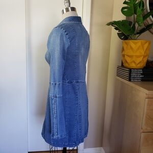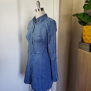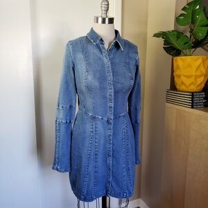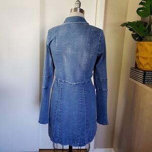 Design/Details: Free People timeless premium denim dress. Design features comfortable stretch denim, A-line silhouette, front snaps for entry and a unique and stylish open sleeve design.