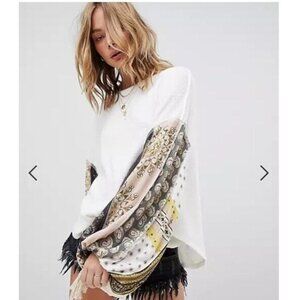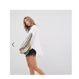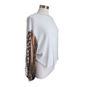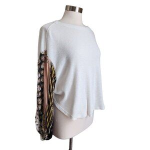 Free People Thermal Blossom Sweater with Paisley sleeves sz S OVERSIZED