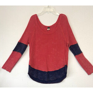 Free People Thermal Colorblock Waffle Knit Top Red Blue Long Sleeve M cozycore