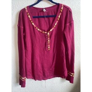 Free People Thermal Henley waffle Aztec Shirt L Pink Western boho hippie