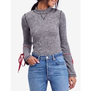 Free People Thermal Sweater Medium Gray Lace Up Sleeves Whimysgoth Grunge Vamp, great condition.