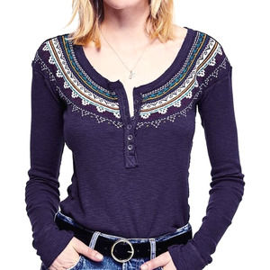 Free People Thermal Top Small Navy Blue Fair Isle Henlet Long Sleeve
