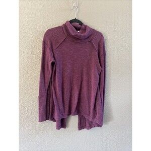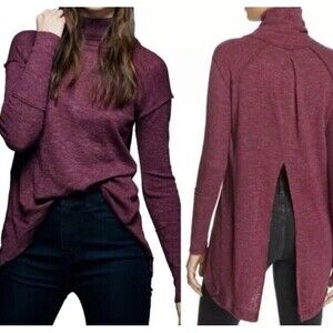 Free People Thermal Tunic Womens Medium Burgundy Split Back Turtleneck Oversized