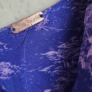 This trendy dress also has pleated and ruffle accents, with a flower, hippie, and bohemian theme that will make you stand out from the crowd. It is easy to care for, as it is machine washable, and is lined, graphic printed, oversized, and lightweight. The dress comes in a regular size large, with long sleeves and a short length. Add this Free People dress to your collection and make a fashion statement.