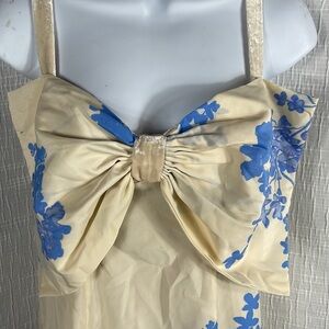 Turn heads in this forever timeless mini dress featured in a staple, A-line silhouette with floral printing throughout and exaggerated bow at front for added dimension. *Fit:* Classic, A-line fit *Features:* Silky fabrication, contrast velvet shoulder straps, smocking at back