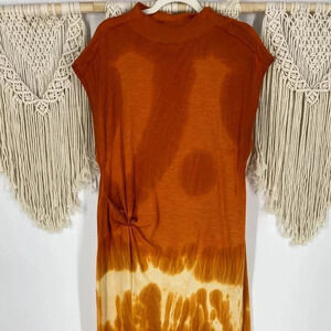 Free People Tie Dye Maxi Side Knot Bohemian Kaftan Cotton sleeveless Dress Rare