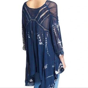 Free People Tie Dye Me Down Blue Sheer Tunic