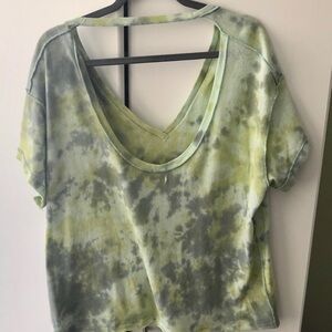 Free People Tie Dyed Oversized Top. Top has short sleeves & deep rounded back. Very soft.