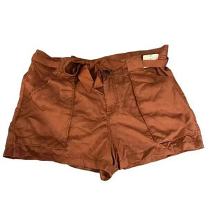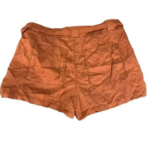 Adorable and trendy shorts. Rust red color. Tie waist detail. Zipper and two snap closure. Front and back pockets.