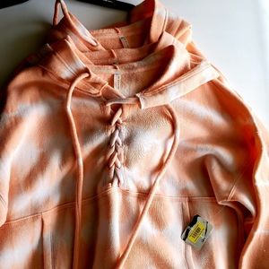 Free People Tie-Dye Peachy Drawstring Lace up Front Beleiver Long Sleeve Shirt Hoodie with ribbed hem and cuffs