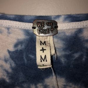 Free People navy and white sleeve tie-dye tee! Extremely soft, in good condition - slight signs of wear. Machine washable!
