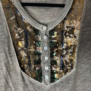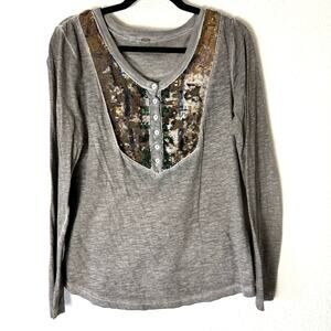Free People Tiger Eyes Metallic Sequin Gray Long Sleeved Top Size Medium