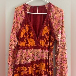 Free People Tilda Floral Bohemian Wrap Dress Maxi Length Femme Combo | Size M