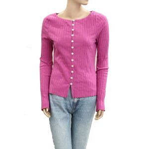 Free People Tilly Long-Sleeve Cardi Blouse Top Knit Ribbed Buttondown XL 280648