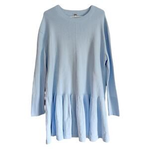 Free People Time On My Side Mini Sweater Dress Ruffle Rib Ice Water Blue Shift Light Blue OB2018303