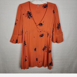 Free People Time On My Side Mini Wrap Dress Floral Orange