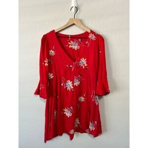 Free People Time On My Side Red Floral Mini Wrap Dress Size M Valentine’s Day