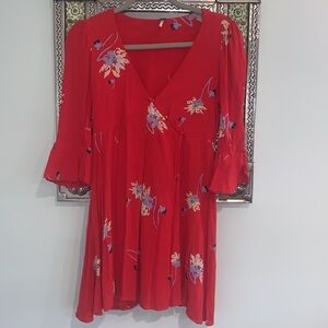 Free People Time On My Side Floral Wrap Dress. Size XS. 3/4 length sleeves with Ruffle and button detail. Excellent condition.