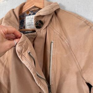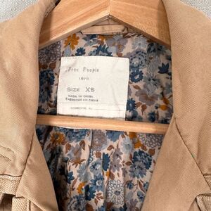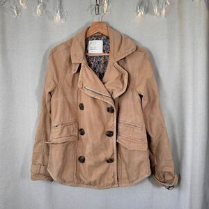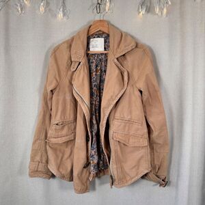 Free People Tipped Canvas Car Coat Tan Brown Floral Lined Jacket XS