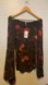 Free People To the Tropics Blouson Sleeve Top NWT Women’s Large Black Floral