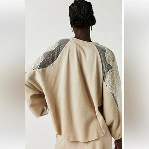 Free People Tonight Top Embroidered Lace Long Sleeve Knit