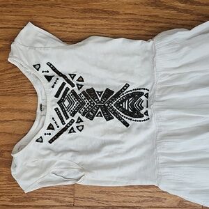Style: This is a casual-chic pull-on midi dress features a bodice with intricate geometric embroidery and cutouts, complemented by a flowing crinkled gauze skirt.