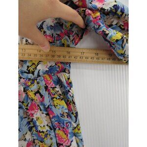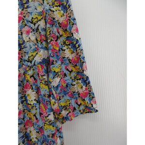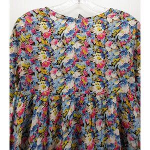 Free People Top 0 Babydoll Henley Blouse Floral Boho Colorful Pleated