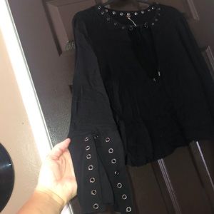 Black low cut, bell sleeve Free People top. Slightly cropped, size S.