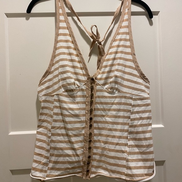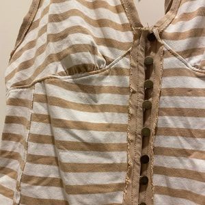 NWT; white and beige stripes free people top with buttons; size L