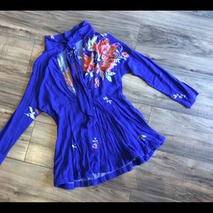 Blue and floral Free People Top. Tye Neck. Excellent condition