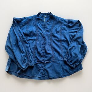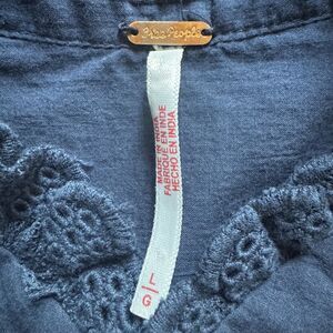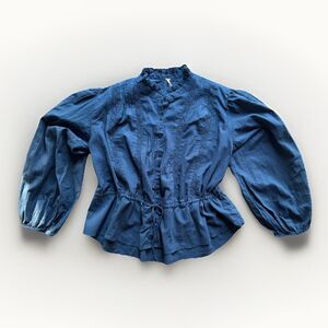 Free People Top Best of Me Long Sleeve Blouse Navy Lace Peplum Tie Size Large