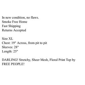 DARLING! Stretchy, Sheer Mesh, Floral Print Top by FREE PEOPLE!