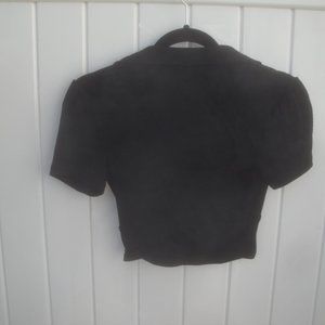 Rayon and Spandex Black Knit Cropped Short Sleeve Top by Free People Size XS