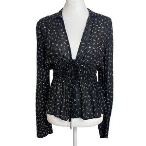 Free People Top Colette Black White Floral Long Sleeve Blouse Womens Size Small