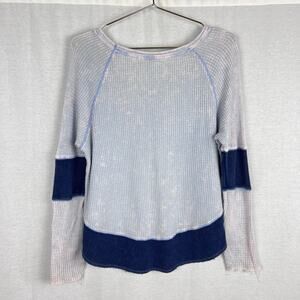 Free People Top Diamond Dozen Blue Thermal Slouchy Boho Artsy Fall Grunge Casual