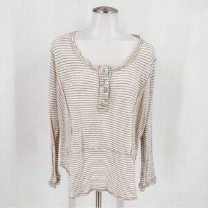 Free People Top Hong Kong Henley Natural Striped Linen Blend Women's Tunic