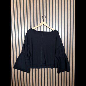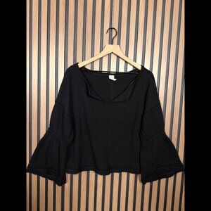 Free People Top Large Womens Dahlia Black Thermal Bell Sleeves Cotton Poly
