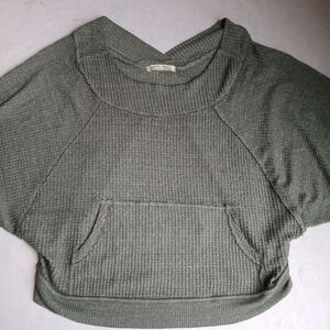 Free People Top Medium Waffle Knit Oversized Dolman Sleeve Pockets Slouchy