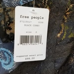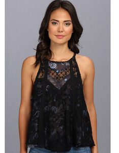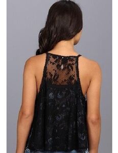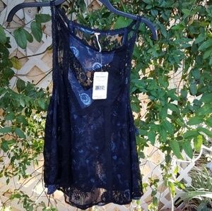 FREE PEOPLE GORGEOUS LACY TOP - BLACK WITH VERY PALE BLUE FLOWERS. SUPER CUTE AND FEMININE - BOHO CHIC!