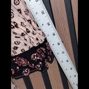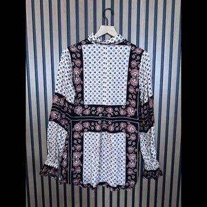 Free People Top Small Women Pink Keyhole Ash Border Art Tunic Blouse Long Sleeve