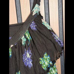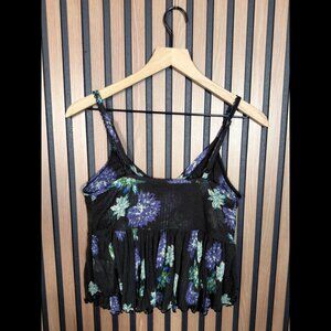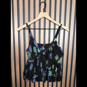Free People Top Small Womens Black Faux Wrap Floral Flutter Sleeveless