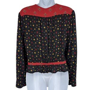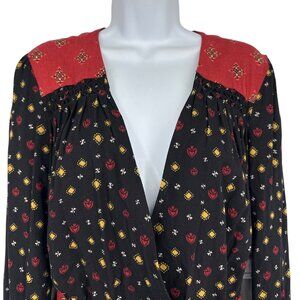 Free People Top Where We Roam Crossover Wrap Long Sleeve Printed Blouse Size S