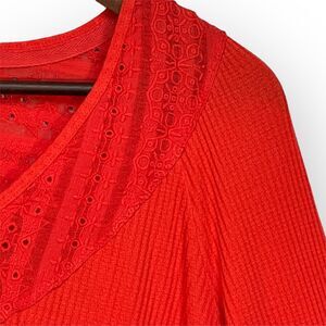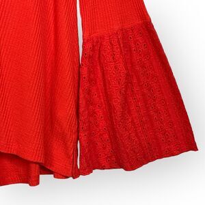 * Free People Top Women Size PS Orange Eyelet Lace Bell Sleeve V Neck Boho