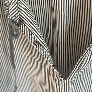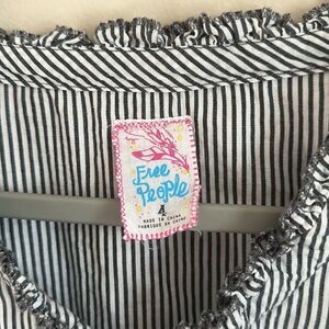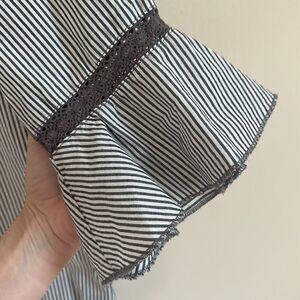 Free People Top Womens 4 Striped Crochet Lace Tie Neck Bell Sleeve Gray Boho
