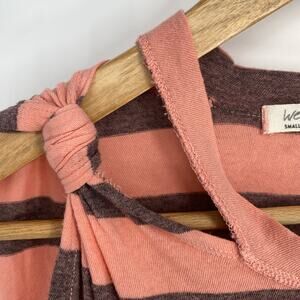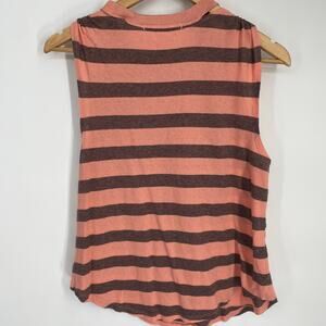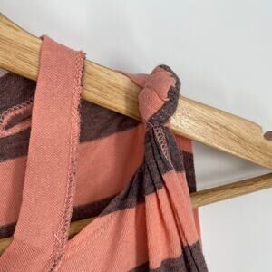 Free People Top Womens Hilary Tank Striped Peach & Black Knotted Straps Bohemian