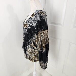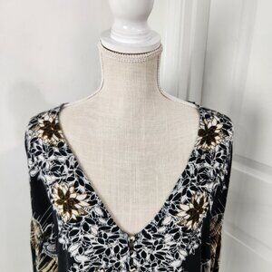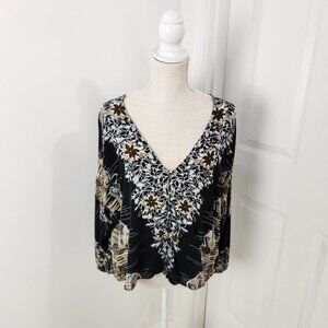 Free People Top Womens L Black Birds Of A Feather Peasant Boho Deep V-Neck
