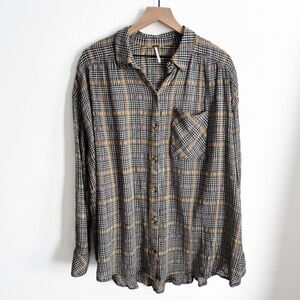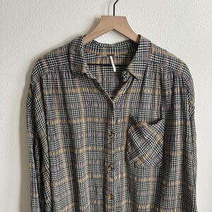 Free People Top Womens Large Plaid Button Up Artsy Coastal Beachy Festival Boho