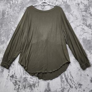 Free People Top Womens M Army Green Shimmy Shake Tunic Ribbed Knit Low Open Back Boho Casual