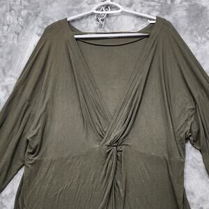 Free People Top Womens M Army Green Shimmy Shake Tunic Ribbed Knit Low Open Back