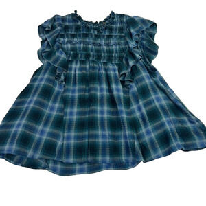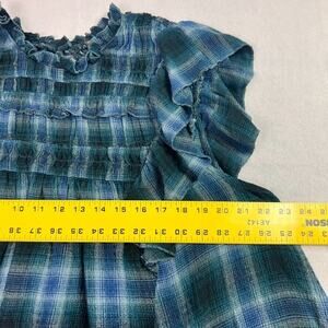 Free People Top Womens Medium Blue Not Your Average Girl Navy Ruffle Shoulder